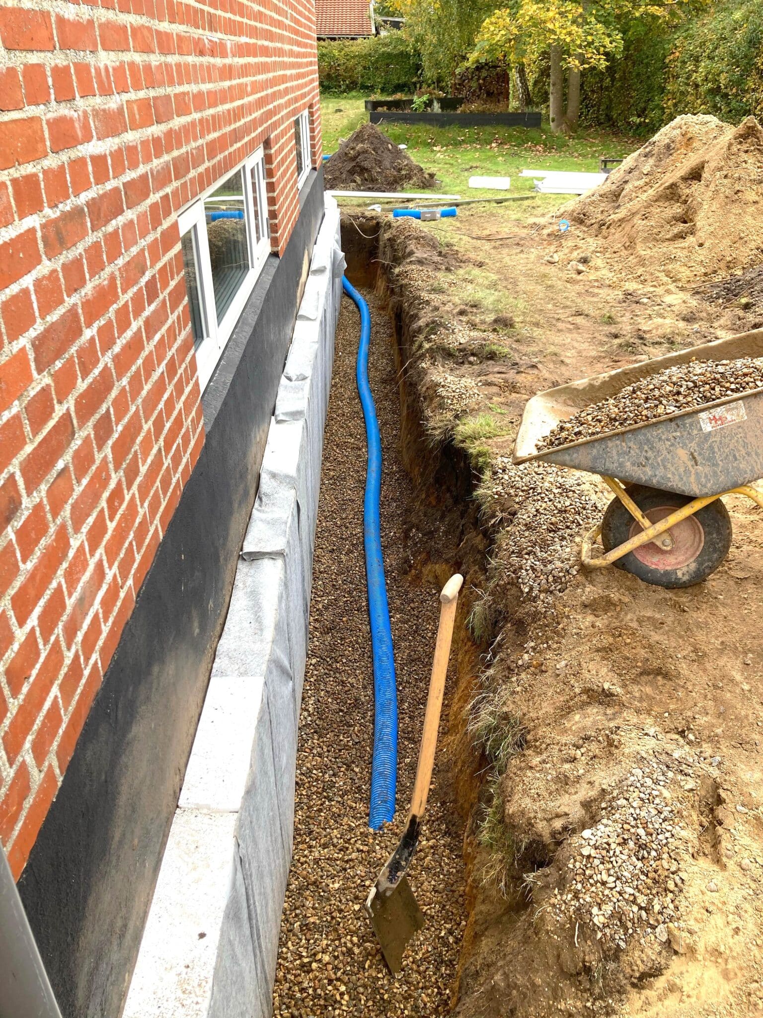 Omfangsdræn: Etablering af dræn udføres